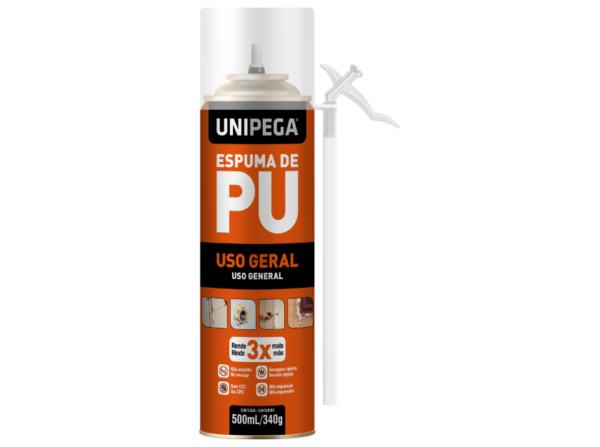 Espuma autoexpansiva de poliuretano monocomponente sin CFC para uso general con alta expansión. Es indicado para fijación en ductos y aparatos de aire acondicionado, llenado de marcos de puertas y ventanas, cumbreras, aislamiento térmico y acústico. Se adhiere en metal, madera, albañilería, cerámica, mármol y granito.